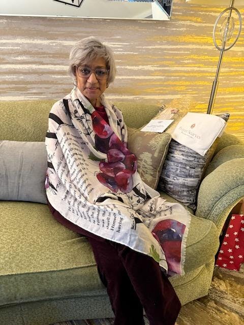 Includes our canvas envelope bag for storing and protecting the scarf when not in use.